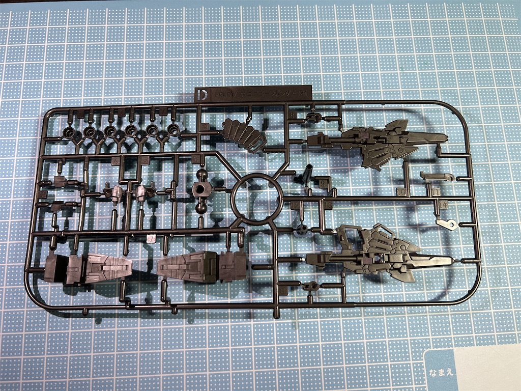 Bランナーと同じく、本キットの特徴であるチタニウムフィニッシュ(ホワイトメッキ)が施された外装パーツのランナーです。ランナータグは「HGUC 1/144 ユニコーンガンダム DM」となっています。